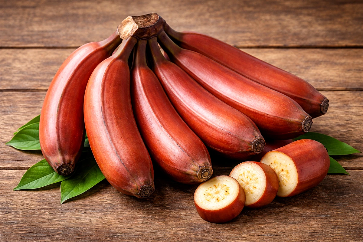 Röda bananer (Musa acuminata 'Red Dacca') är en färgstark släkting till den vanliga gula bananen. De kännetecknas av sitt röd-lila skal och ett krämigt, nästan rosa fruktkött. Utöver den iögonfallande färgen erbjuder de en unik smakupplevelse och en imponerande näringsprofil.